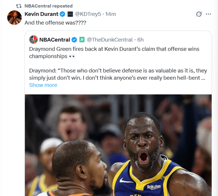 杜兰特回击格林: 勇士时期进攻水平是如何的呢